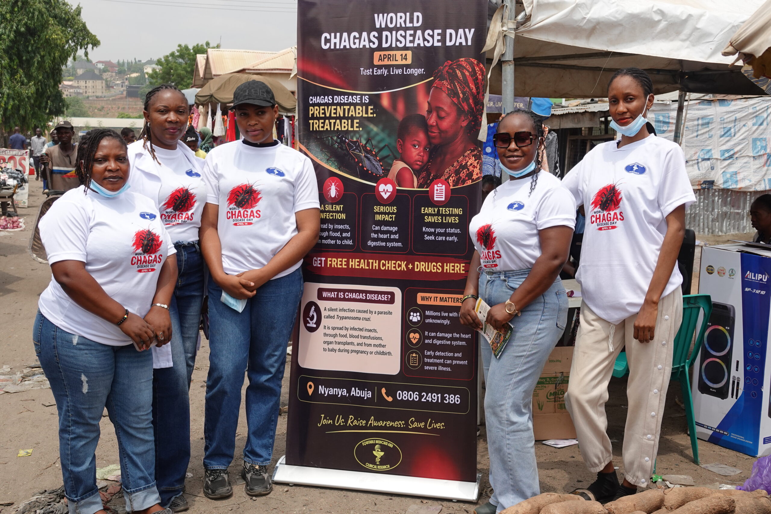 On April 14, Equitable Medicaid and Clinical Research marked World Chagas Disease Day with an awareness outreach at Nyanya Market, a busy suburb in Abuja known for its high daily foot traffic and active trade.